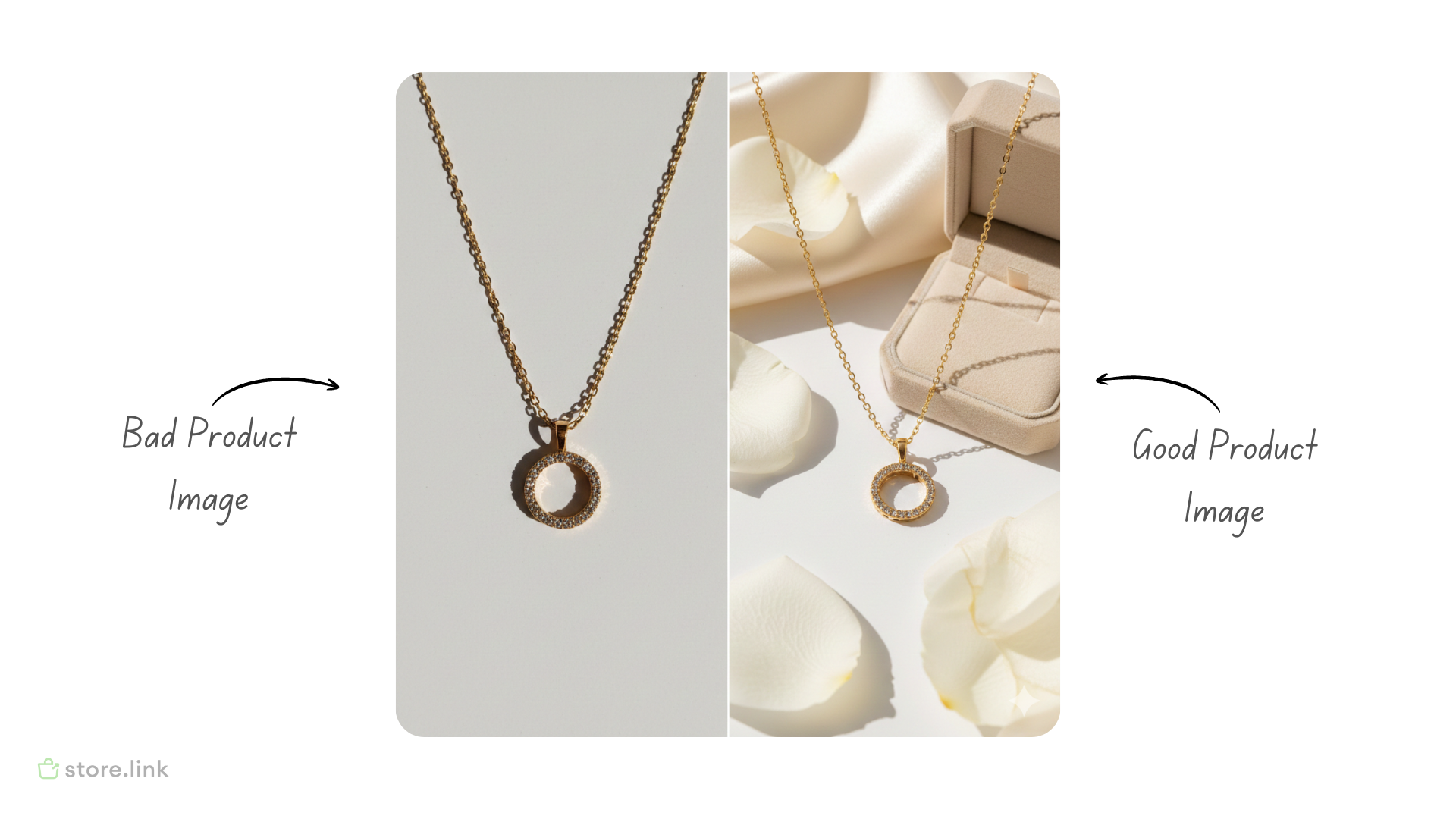 Clear photos make a big difference. Natural light, close up shots and worn shots help customers understand how the jewelry looks in real life. Store.link supports multiple images and videos for each product, which lets you show details from different angles and increase customer confidence.